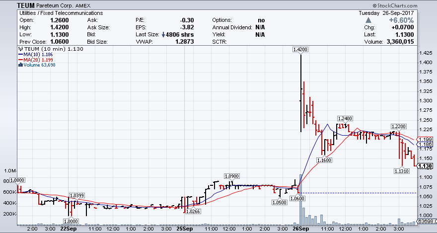 Pareteum Corporation – TEUM Stock Chart Technical Analysis for 09-26-17