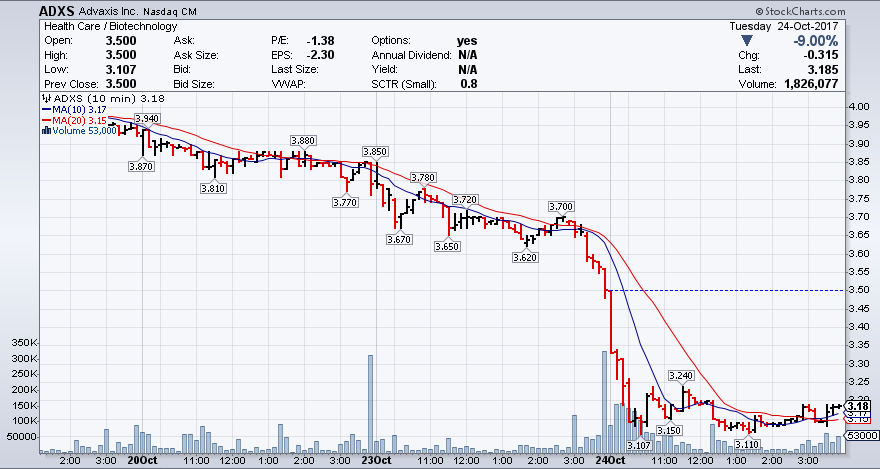 Advaxis, Inc – ADXS Stock Chart Technical Analysis for 10-24-17