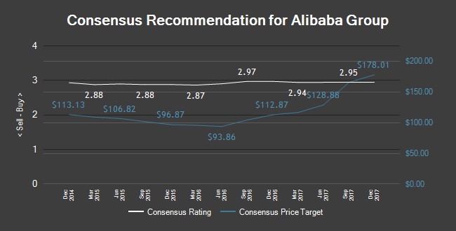A number of other analysts have also recently issued reports on BABA. Zacks Investment Research raised Alibaba Group from a “hold” rating to a “buy” rating and set a $211.00 price objective for the company in a research report on Wednesday, November 8th. Oppenheimer reaffirmed a “buy” rating and issued a $220.00 price objective (up from $200.00) on shares of Alibaba Group in a research report on Monday, November 6th. SunTrust Banks reaffirmed a “buy” rating and issued a $210.00 price objective on shares of Alibaba Group in a research report on Friday, November 3rd. KeyCorp reaffirmed a “buy” rating on shares of Alibaba Group in a research report on Friday, November 3rd. Finally, Robert W. Baird raised their price objective on Alibaba Group from $190.00 to $210.00 and gave the company an “outperform” rating in a research report on Friday, November 3rd. One analyst has rated the stock with a sell rating, one has given a hold rating, thirty-two have given a buy rating and two have issued a strong buy rating to the company. Alibaba Group currently has a consensus rating of “Buy” and a consensus price target of $184.15.