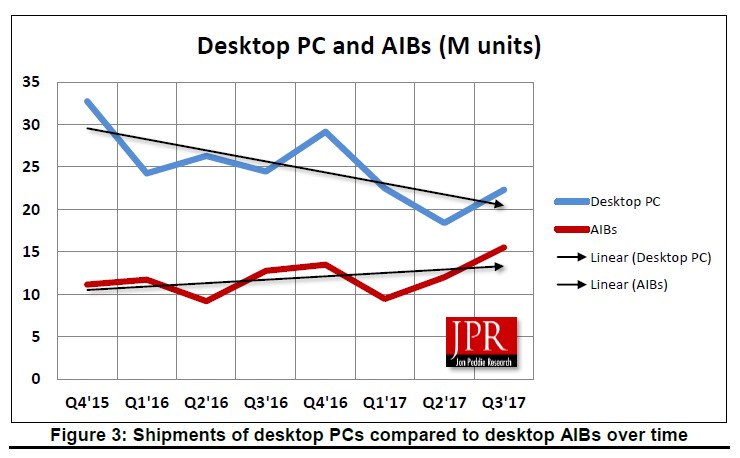 “AIB shipments during the quarter increased from the last quarter 29.1%, which is which is above the ten-year average of 14.4%. On a year-to-year basis, we found that total AIB shipments during the quarter rose 21.5%, which is greater than desktop PCs, which fell 8.9%.” JPR Report Says.