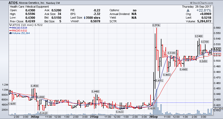 Atossa Genetics, Inc – ATOS Stock Chart Technical Analysis for 09-28-17