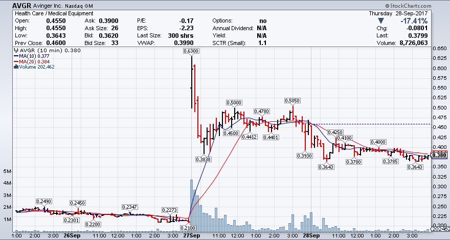Avinger Inc – AVGR Stock Chart Technical Analysis for 09-28-17
