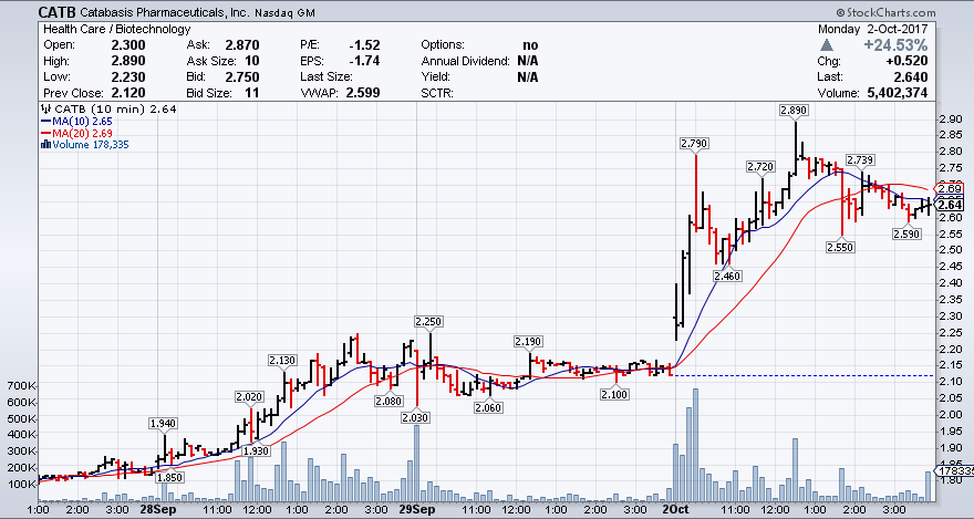 Catabasis Pharmaceuticals – CATB Stock Chart Technical Analysis for 10-02-17