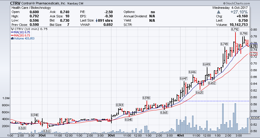 ContraVir Pharmaceutcals – CTRV Stock Chart Technical Analysis for 10-04-17