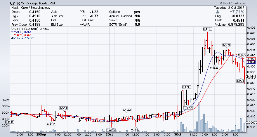 Cytrx Corp – CYTR Stock Chart Technical Analysis for 10-03-17