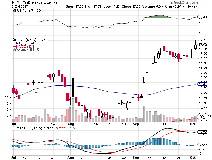 [/vc_column_text][vc_column_text]FireEye, Inc. (FEYE) stock price traded with surging change along with the volume 3.94 million shares on Monday trading session. Shares are trading price at $17.28 with move of 3.04%. The company’s 3-months average volume stands at 5.08 million. When we divide the last trade volume by the 3-month average volume, we found out a relative volume of 0.78. Current trade price levels places FEYE’s stock about -1.31% away from the 52-week high and closed 66.96% away from the 52-week low. The total dollar value of all 182.71 million outstanding shares is 3.16 billion.[/vc_column_text][/vc_column][/vc_row][vc_row][vc_column width=”1/2″][vc_column_text css_animation=”fadeInLeft”]Analysts recommendation for FireEye, Inc. (FEYE)