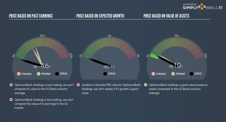 The banking industry is trading at a PE ratio of 18x, relatively similar to the rest of the US stock market PE of 22x. This illustrates a fairly valued sector relative to the rest of the market, indicating low mispricing opportunities. Furthermore, the industry returned a similar 8.95% on equities compared to the market’s 10.06%. Since OPHC’s earnings doesn’t seem to reflect its true value, its PE ratio isn’t very useful. A loose alternative to gauge OPHC’s value is to assume the stock should be relatively in-line with its industry.