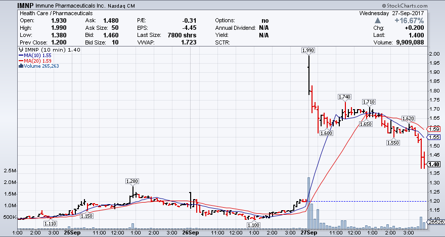 Immune Pharmaceuticals Inc – IMNP Stock Chart Technical Analysis for 09-27-17