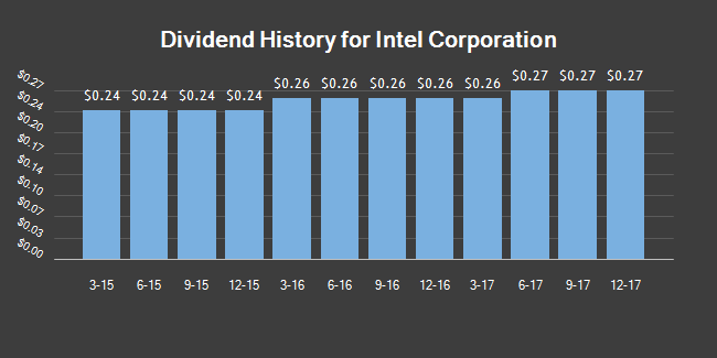 Intel Corporation has raised its dividend payment by an average of 4.9% annually over the last three years and has increased its dividend annually for the last 2 consecutive years. Intel Corporation has a dividend payout ratio of 33.5% meaning its dividend is sufficiently covered by earnings. Equities analysts expect Intel Corporation to earn $3.28 per share next year, which means the company should continue to be able to cover its $1.09 annual dividend with an expected future payout ratio of 33.2%.