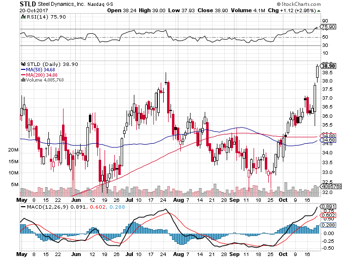 • Over the past few weeks the stock has moved up to the top of the trading range