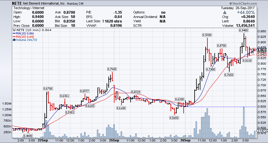 Net Element, Inc – NETE Stock Chart Technical Analysis for 09-26-17