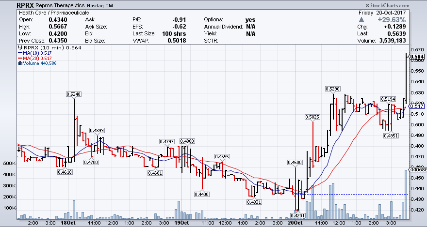 Repros Therapeutics, Inc – RPRX Stock Chart Technical Analysis for 10-20-17