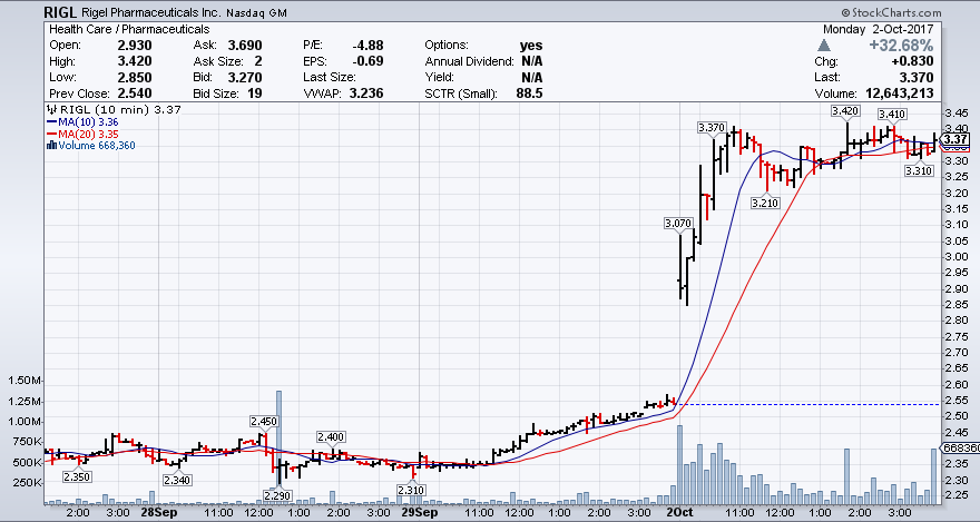 Rigel Pharmaceuticals Inc – RIGL Stock Chart Technical Analysis for 10-02-17