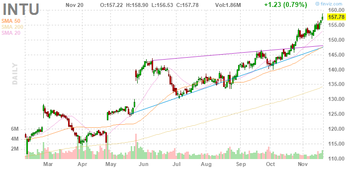 [/vc_column_text][/vc_column][/vc_row][vc_row][vc_column width=”1/2″][vc_column_text css_animation=”fadeInLeft”]Watching last month’s opinion reading on shares of Intuit Inc (INTU), we see that the signal is 100% Buy. This is the combined signal for the previous month when applying a wide array of studies based on price movement. Using these same guidelines, the signal for last week stands at 96% Buy, and 96% Buy for the previous trading session. Investors may also be interested in the strength and direction of the opinion signals. The opinion direction is currently Top 1%. This is a measurement over the past three trading sessions that provides an indication of whether the latest recent price movement is following the signal. A Buy or Sell signal with a “Strongest” direction indicates that the signal is gaining strength. The opinion strength signal is presently reading Maximum. This is a longer-term gauge verse the historical strength.
