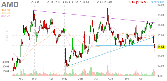 [/vc_column_text][/vc_column][/vc_row][vc_row][vc_column width=”1/2″][vc_column_text css_animation=”fadeInLeft”]When a stock fails to pop after reporting better-than-expected numbers and delivering above-consensus guidance, that is usually a surefire sign of a maxed-out valuation. I think that is exactly what we have with Advanced Micro Devices, Inc. (NASDAQ:AMD), the once-loved chip maker whose stock is getting beaten up after the company reported better-than-expected third quarter numbers.